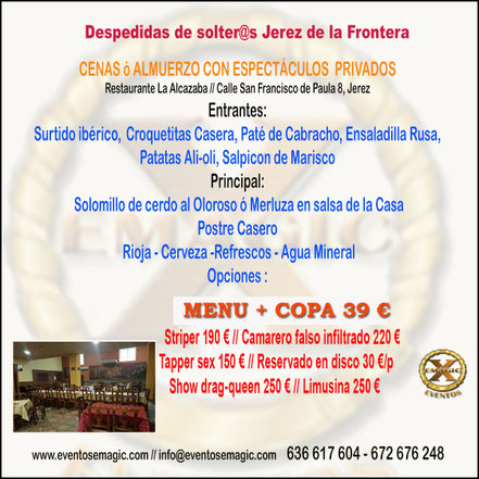 ¿Estáis pensando en ir de despedida de soltera a Jerez durante la feria de mayo y no sabes dónde alojarte, donde cenar,...? Desde Eventos Emagic te lo ponemos muy fácil. Envíanos un correo o llámanos al 636 617 604, te vamos a proponer como organizar todo lo que necesita vuestro grupo de manera personalizada, nosotros te lo gestionamos lo más rápidamente posible.
